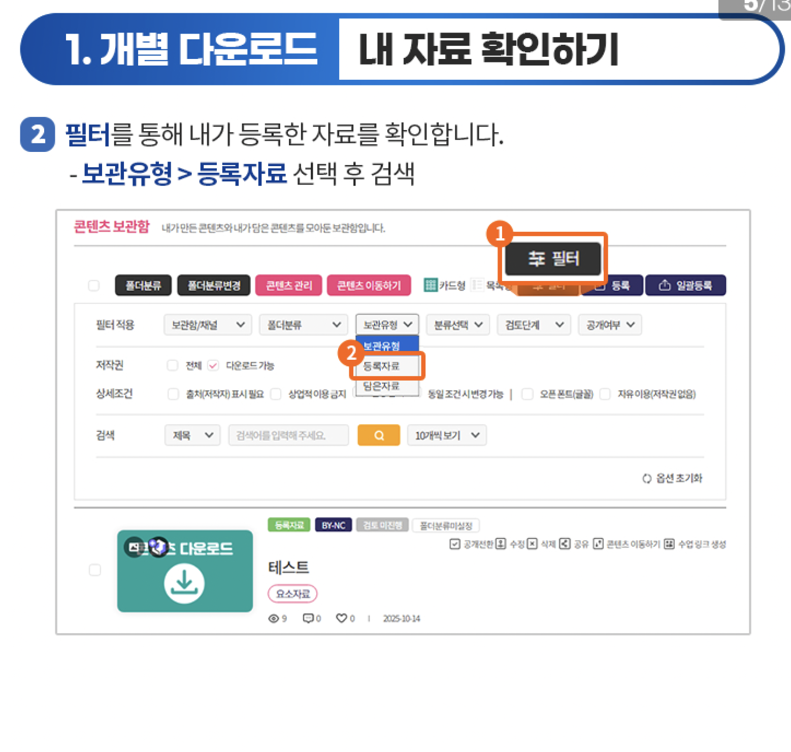 ② 콘텐츠 화면에서 다운로드