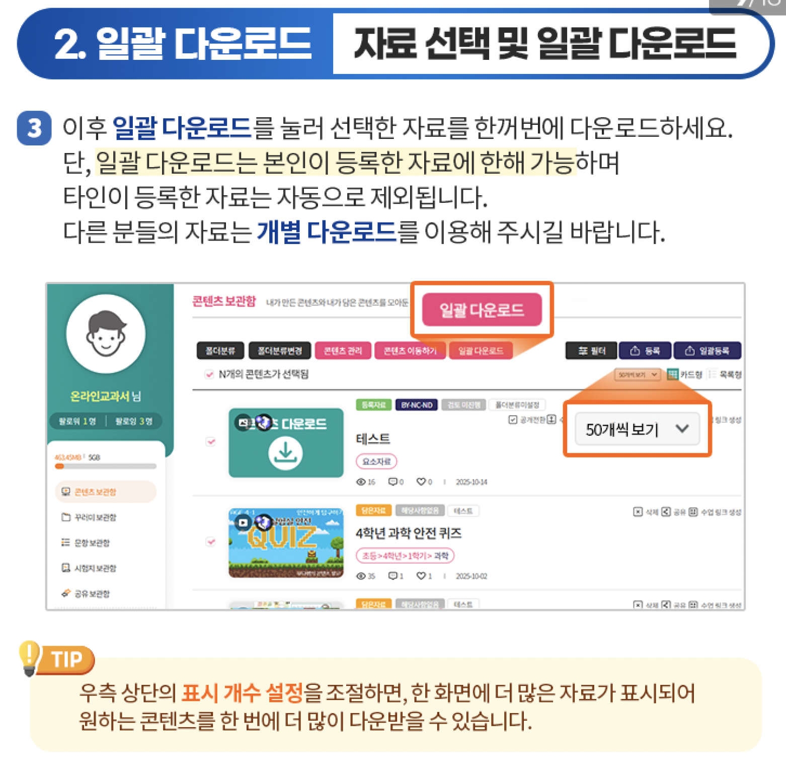 • 본인이 등록한 자료만 자동으로 다운로드