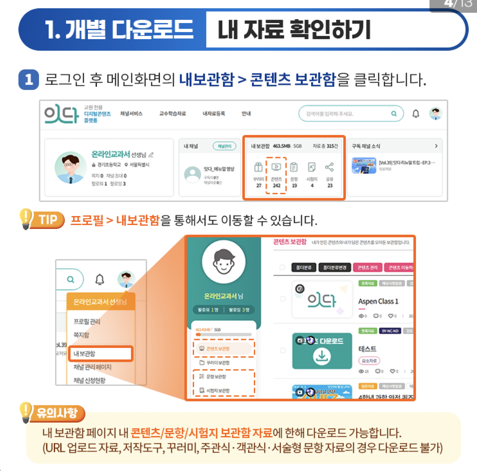 • 메인화면 → 내보관함 > 콘텐츠 보관함