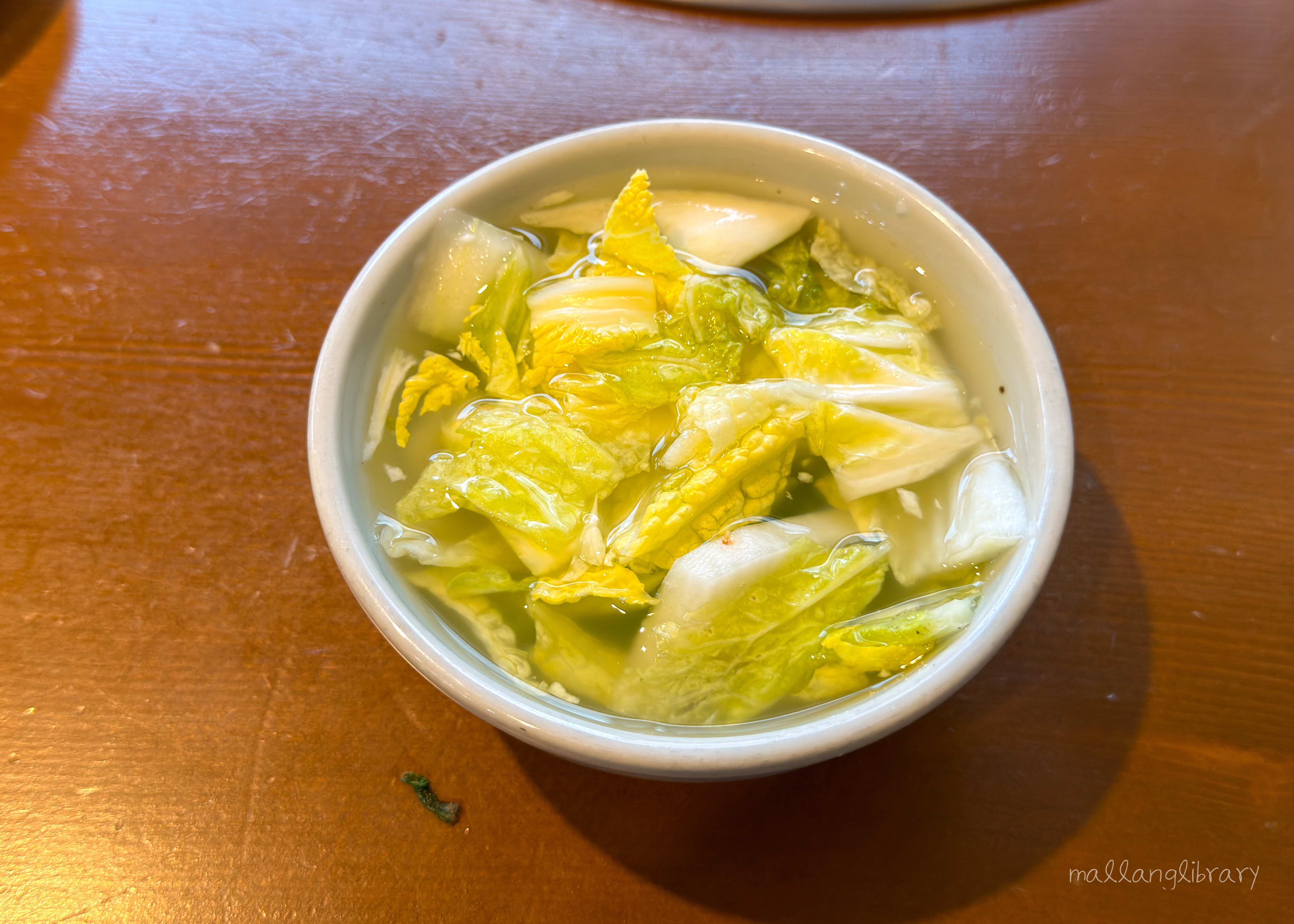 그 순간 아삭한 물김치와 동치미 같은 시원한 국물이 등장합니다. 입안을 개운하게 씻어주며 다시 다음 한 숟가락이 자연스럽게 이어지는 맛입니다.