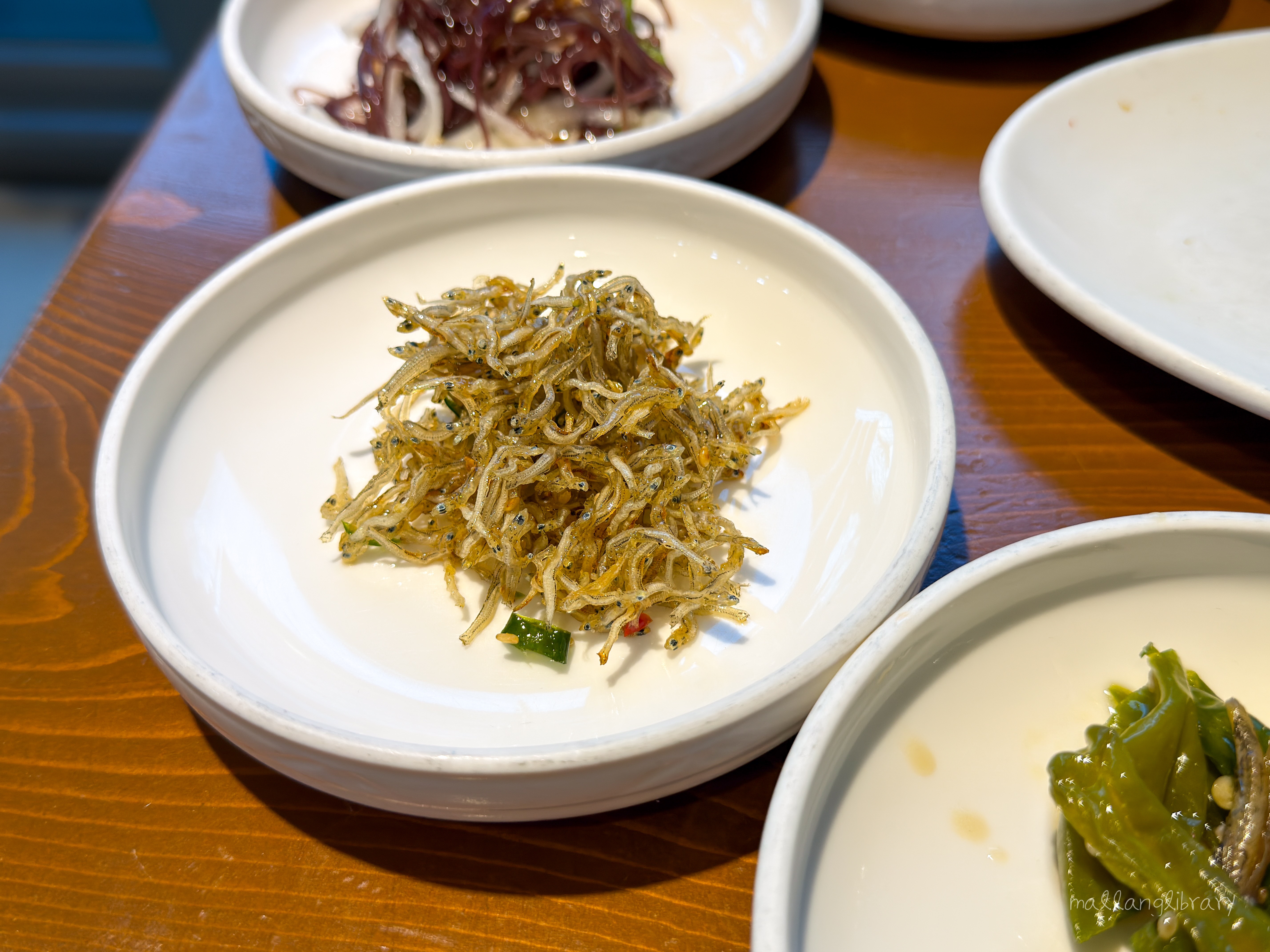 쫄깃하면서도 간장 없이 먹어도 짭쪼름하게 간이 잘 되어 있는 작은 부침개가 먼저 나옵니다. 앙증맞은 크기라 젓가락이 절로 가고, 식사 전 입맛 돋우기에 딱 좋습니다.