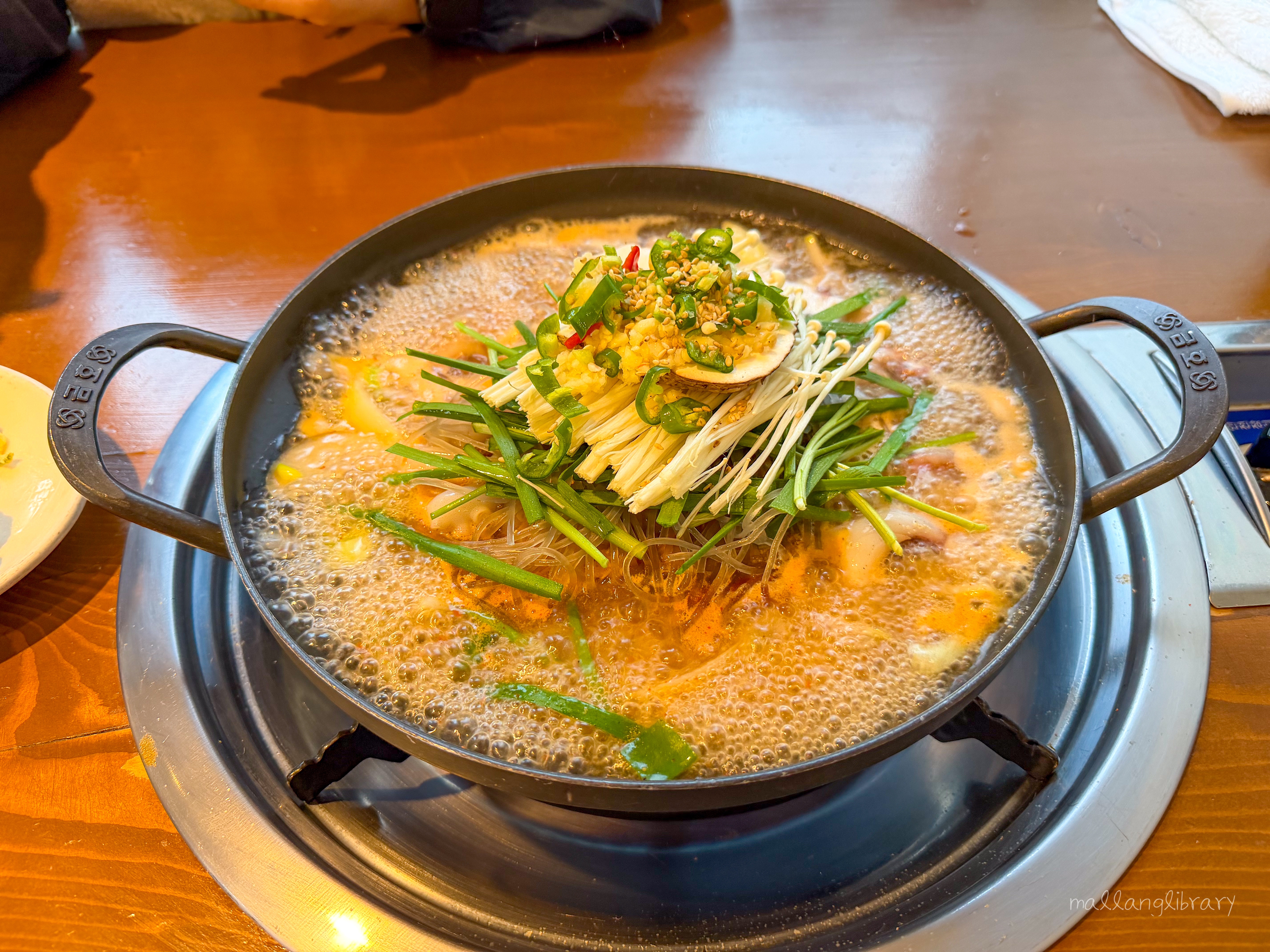 이 집의 매력 중 하나는 단일 메뉴라는 점입니다. 고민 없이 자연스럽게 낙지전골로 합의가 되고, 상차림도 금세 나옵니다.